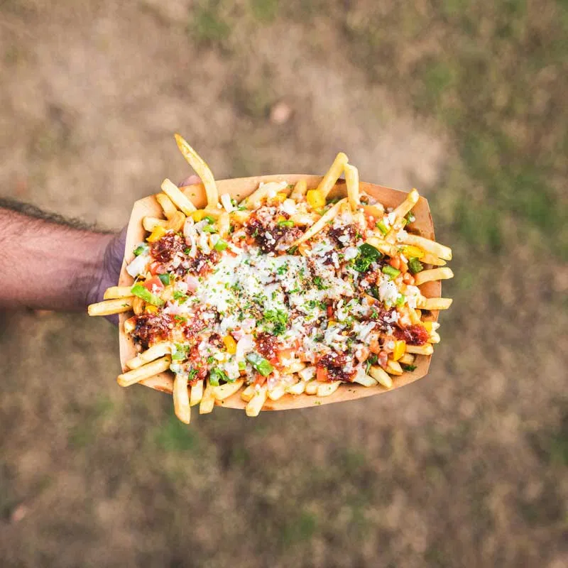 Onze loaded fries zijn populair op festivals, openingen en natuurlijk bij een stoere foodtruck thuis-ervaring.